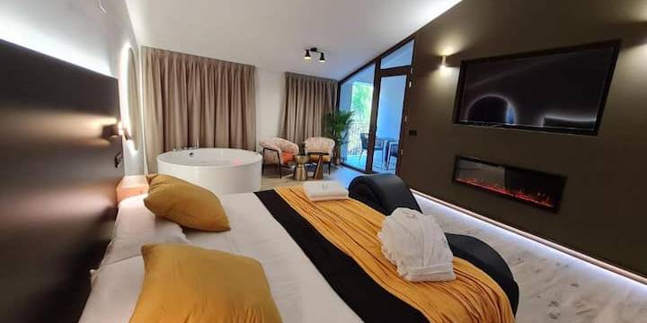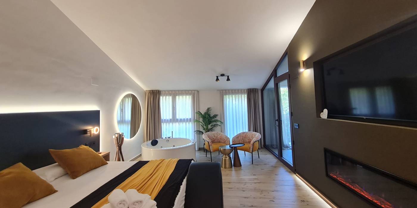 Relájate en el espectacular jacuzzi junto a tu cama King Size o prepara una cena íntima en la cocina totalmente equipada.